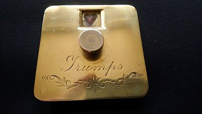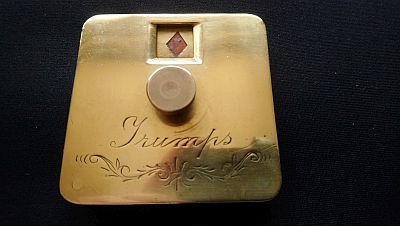 See also number 32 Heavy! (293 gram) - 7,8 cm X 7,8 cm and 1,4 cm thick - Werd in het begin van de vorige eeuw door bridge spelers gebruikt Laat de toeschouwer aan het wiel draaien om een willekeurige soort te kiezen. - A été utilisé par les joueurs de bridge au début du siècle dernier Demandez au spectateur de faire tourner la roue pour choisir une couleur au hasard. - Wurde zu Beginn des letzten Jahrhunderts von Bridge-Spielern verwendet Lassen Sie den Zuschauer das Rad drehen, um eine zufällige Farbe auszuwählen. - Used by bridge players in the early 1900s Let the spectator spin the wheel to choose a random suit. |