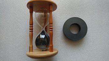 - Zandloper die van op afstand kan gestopt worden (door sterke magneet in mouw) - Sablier arrêtable à distance (par aimant puissant dans la pochette) - Sanduhr, die aus der Ferne gestoppt werden kann (durch starken Magneten in der Hülle) - Hourglass that can be stopped remotely (by strong magnet in sleeve) |