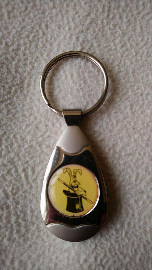 Key ring with top hat and rabbit