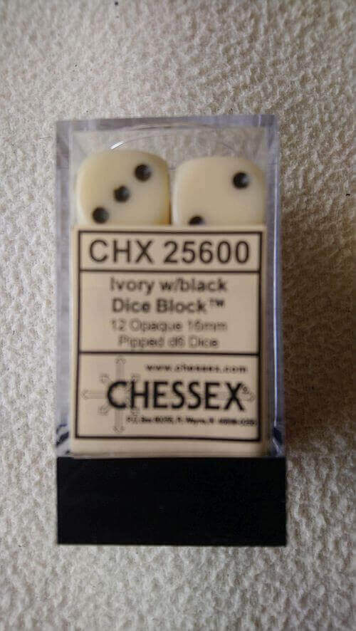 12 ivory colored dice 16mm