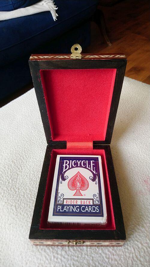 9,58 wide, 12,5 long,4,1 cm high - Pokerdeck in card case past er in - Le jeu de poker dans l'étui à cartes s'insère - Pokerdeck im Kartenetui passt hinein - Poker deck in card case fits in |